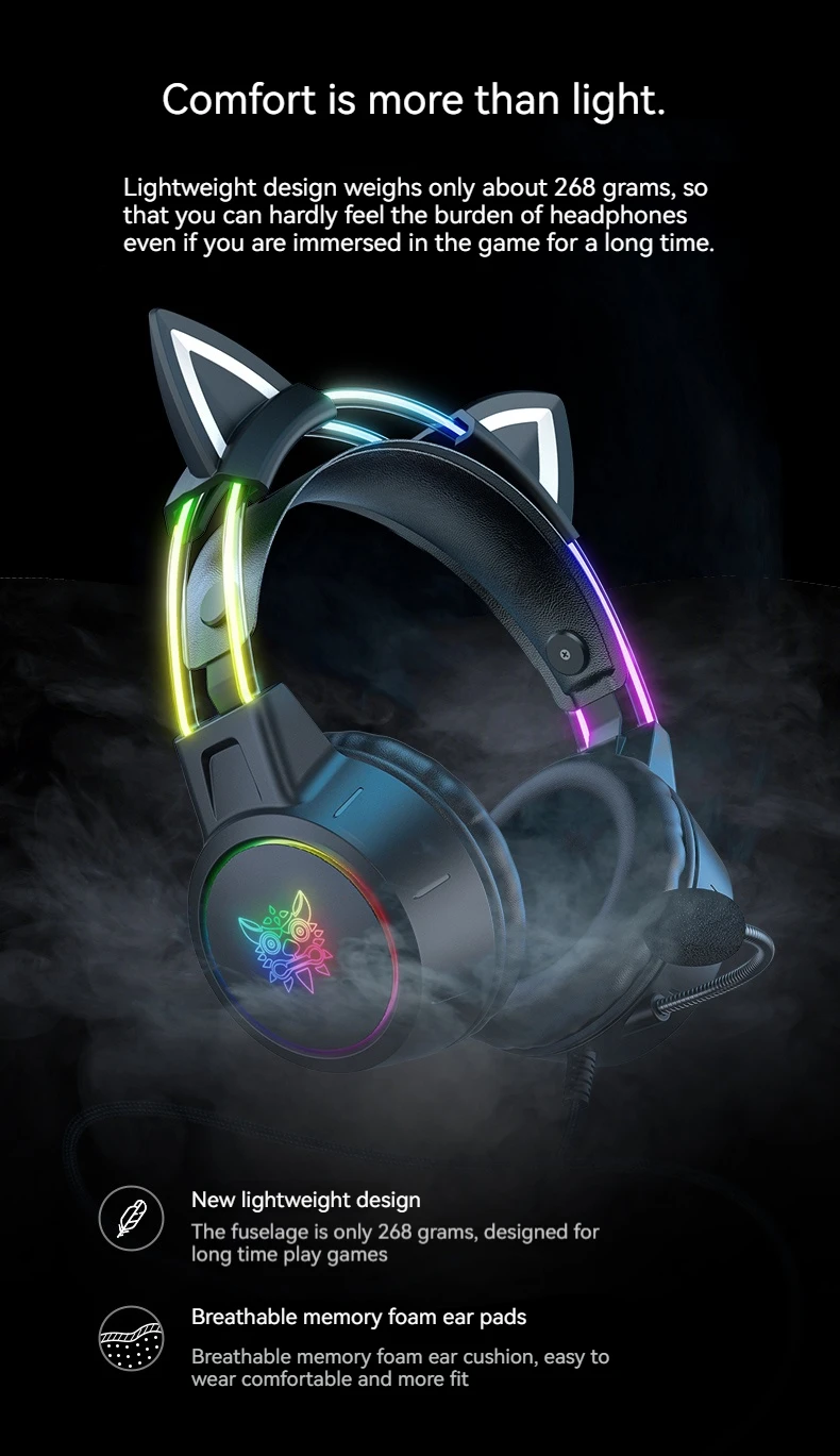 • Detachable Cat Ears :The detachable cat ears allow you to customize your headset and make it stand out from the rest.