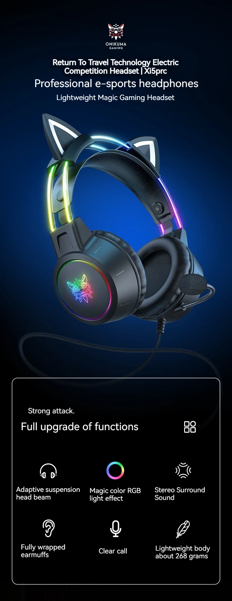 Package includes: gaming headset, detachable cat headset, headset stand, gaming mouse, gaming keyboardProfessional E-Sports Headphones